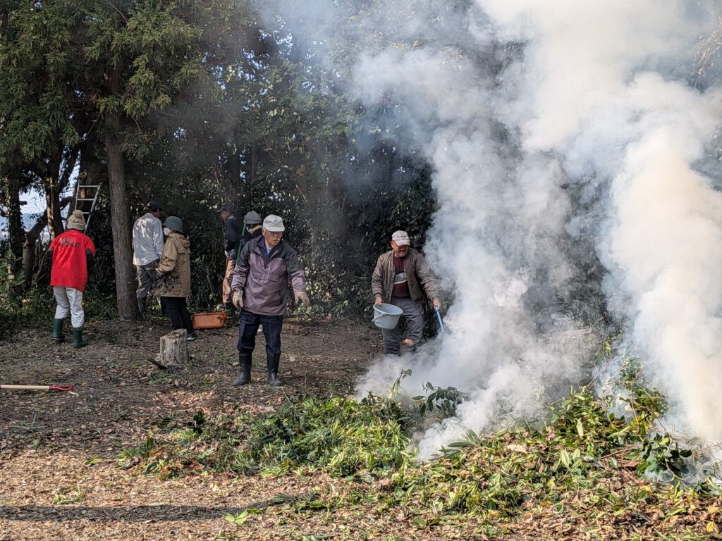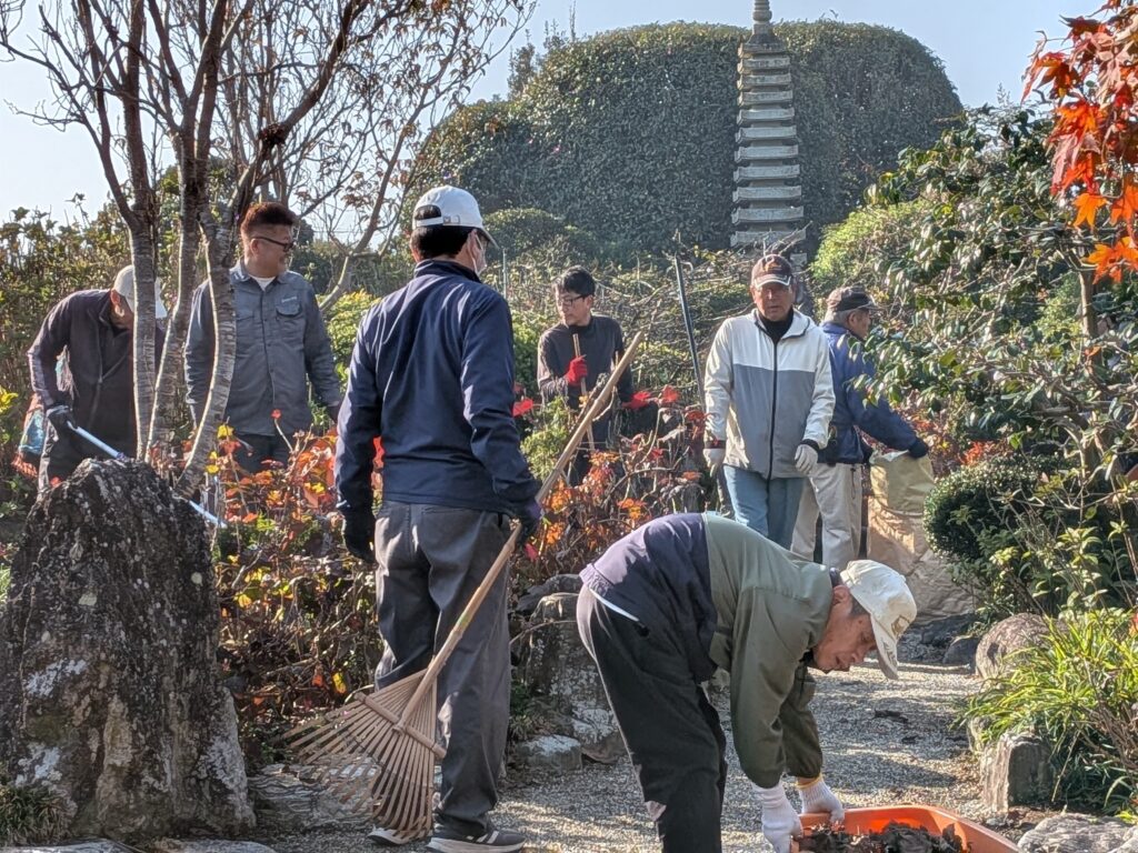 11月30日、雨で2回伸びていた檀家総出会いの境内の掃除が終わりました。「垣根の刈り取り、雑木の伐採、草引き等、 4班に分かれて2時間半。8時から始まった作業で、境内が明るくきれいになりました。